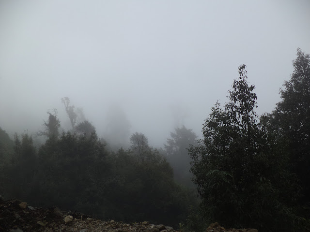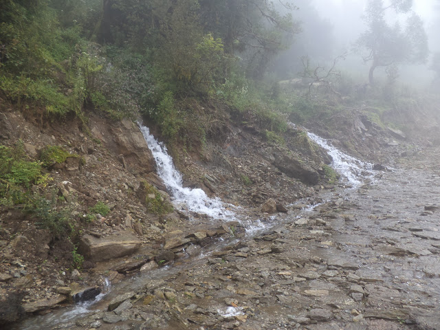 My solo trip started to get really scary as the fog started to set in and the visibility was poor. Whenever the fog moved , the trees would make rustling noise and it would drizzle too. To make the scene even more scarier there were the roaring noise of waterfalls, scary bird`s call and the branches of the tress covered with mosses hanging down like in any ghost or thriller movies. I wanted to quit so bad but I had no idea how far Kuri was. I told myself ,"This whole solo trek is what I have been whining about from a year. Now I am doing it, why quit? Look, if I survive this, then I have one hell of a story to tell. SOLO , of all of the things I could do , I choose solo. How stupid have I become?". After 3 hours of walk I saw an old man appearing out of dense fog from the opposite direction. I was so happy to finally meet someone and again I asked him about the direction and time to reach Kuri.